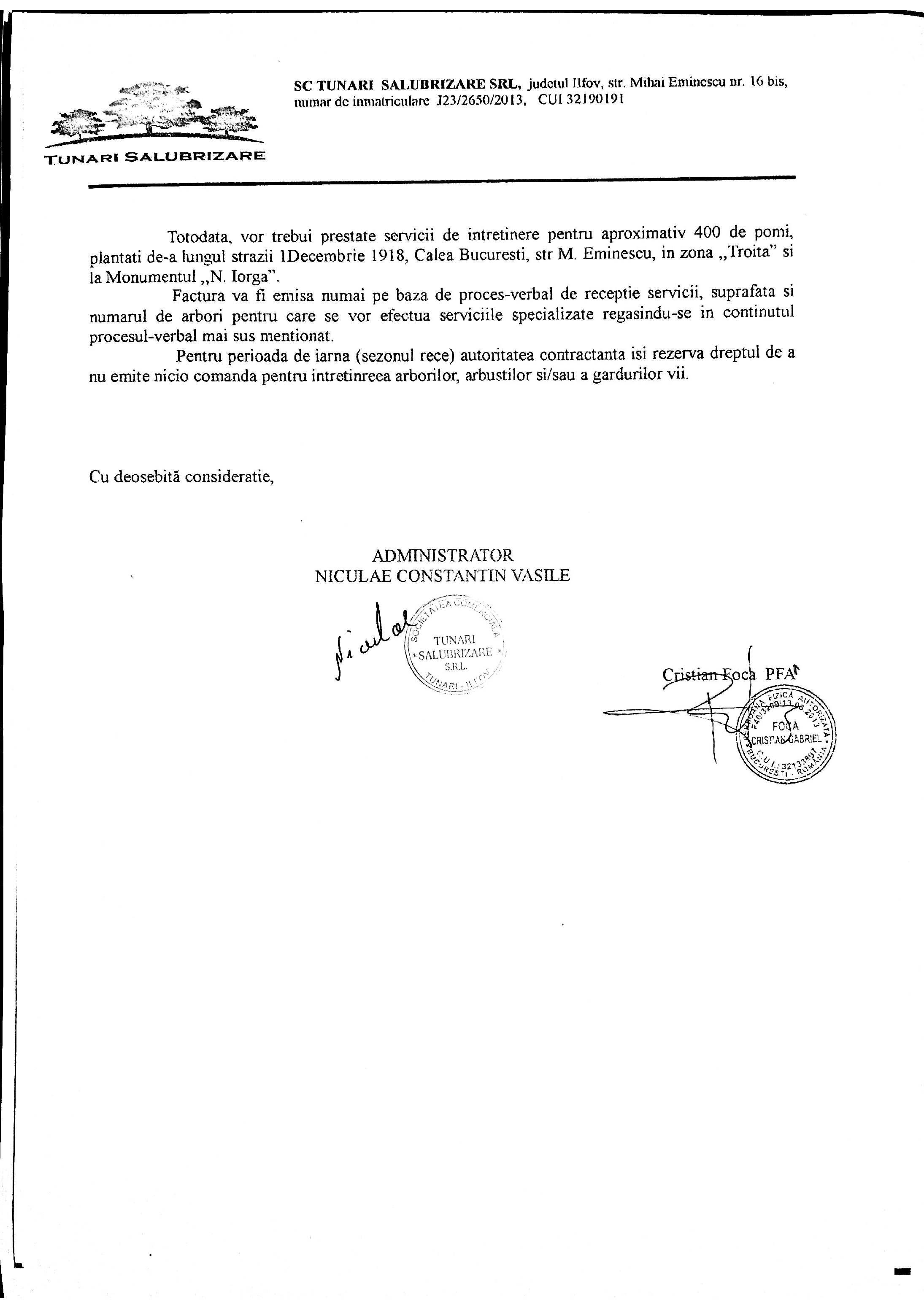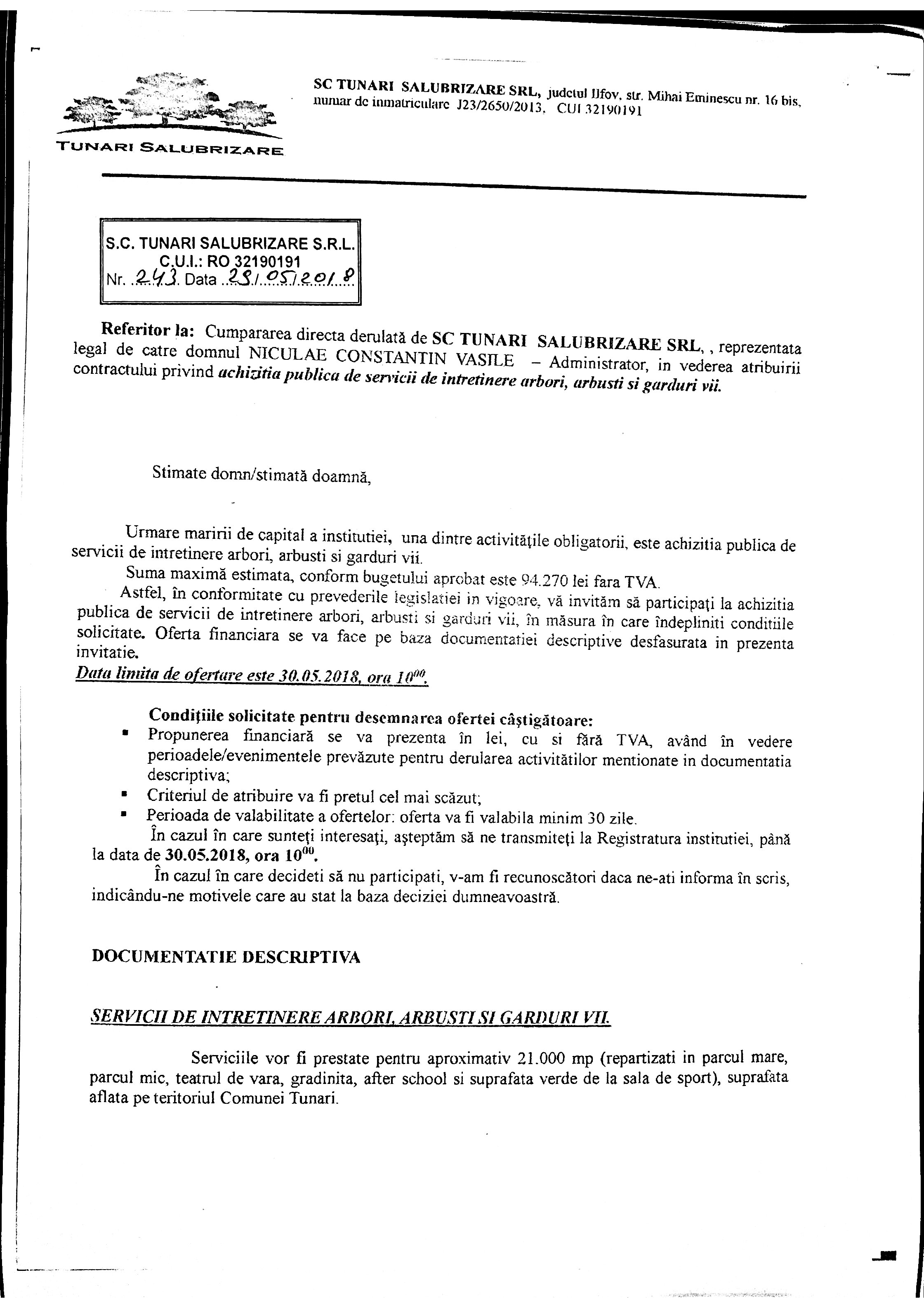 Invitatie nr. 243/29.05.2018 la atribuirea contractului privind achizitia publica de intretinere arbori, arbusti si garduri vii